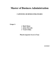 Este plan propone diversificar la oferta de Sweet & Tasty con una nueva línea de repostería saludable. Mediante un análisis de mercado, identifica un segmento compuesto por adultos jóvenes y profesionales interesados en productos saludables, personalizados y gourmet. La estrategia incluye venta directa, comercio electrónico y alianzas con negocios afines en Masaya, Managua y Granada. |