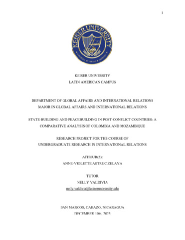 | Title: | State-Building and Peacebuilding in Post-Conflict Countries: A Comparative Analysis of Colombia and Mozambique |