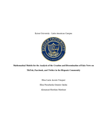 Title: | Mathematical Models for the Analysis of the Creation and Dissemination of Fake News on TikTok, Facebook, and Twitter in the Hispanic Community |