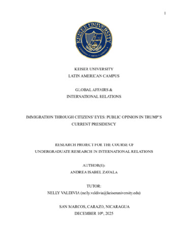 | Title: | Immigration Through Citizens’ Eyes: Public Opinion in Trump’s Current Presidency |
