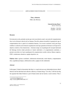 El presente proyecto pretende mostrar que existe una relación causal y necesaria entre el comportamiento ético y la eficiencia colectiva del ser humano. Plantea que la ética no es un simple constructo social, sino parte esencial de la naturaleza humana, y que dicha ética está vinculada con formas de organización social que garantizan la eficiencia en el logro de objetivos colectivos. El estudio argumenta que la relación entre ética y eficiencia rompe con el paradigma del concepto tradicional del liderazgo efectivo basado en el interés individual y el comportamiento autoritario, y promete convertirse en el nuevo paradigma de las organizaciones sociales exitosas, tales como empresas, ONGs, instituciones educativas y equipos deportivos. |